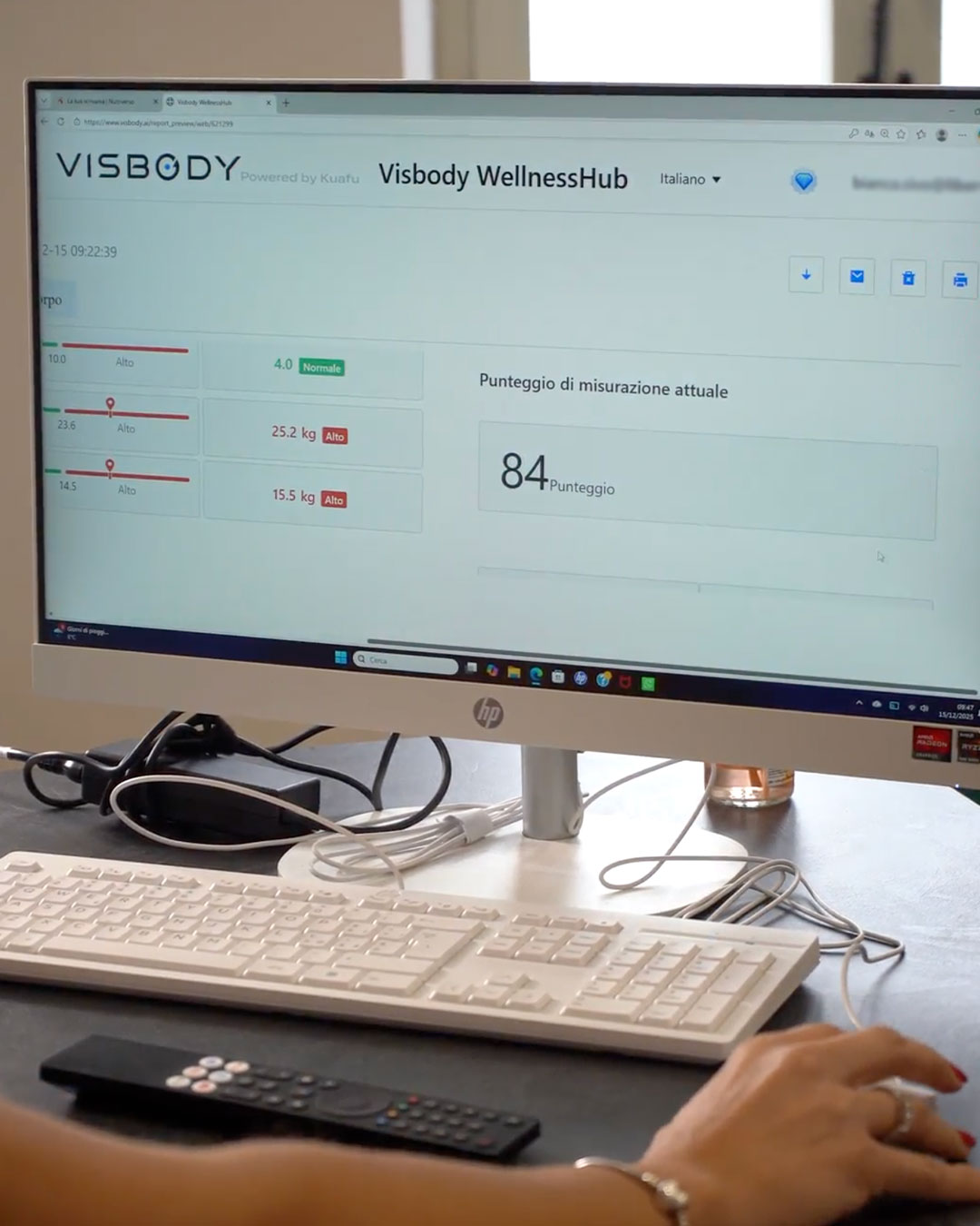 Va oltre la semplice bilancia BIA. Fornisce misure precise e segmentali della composizione corporea, massa magra, grassa e idratazione.